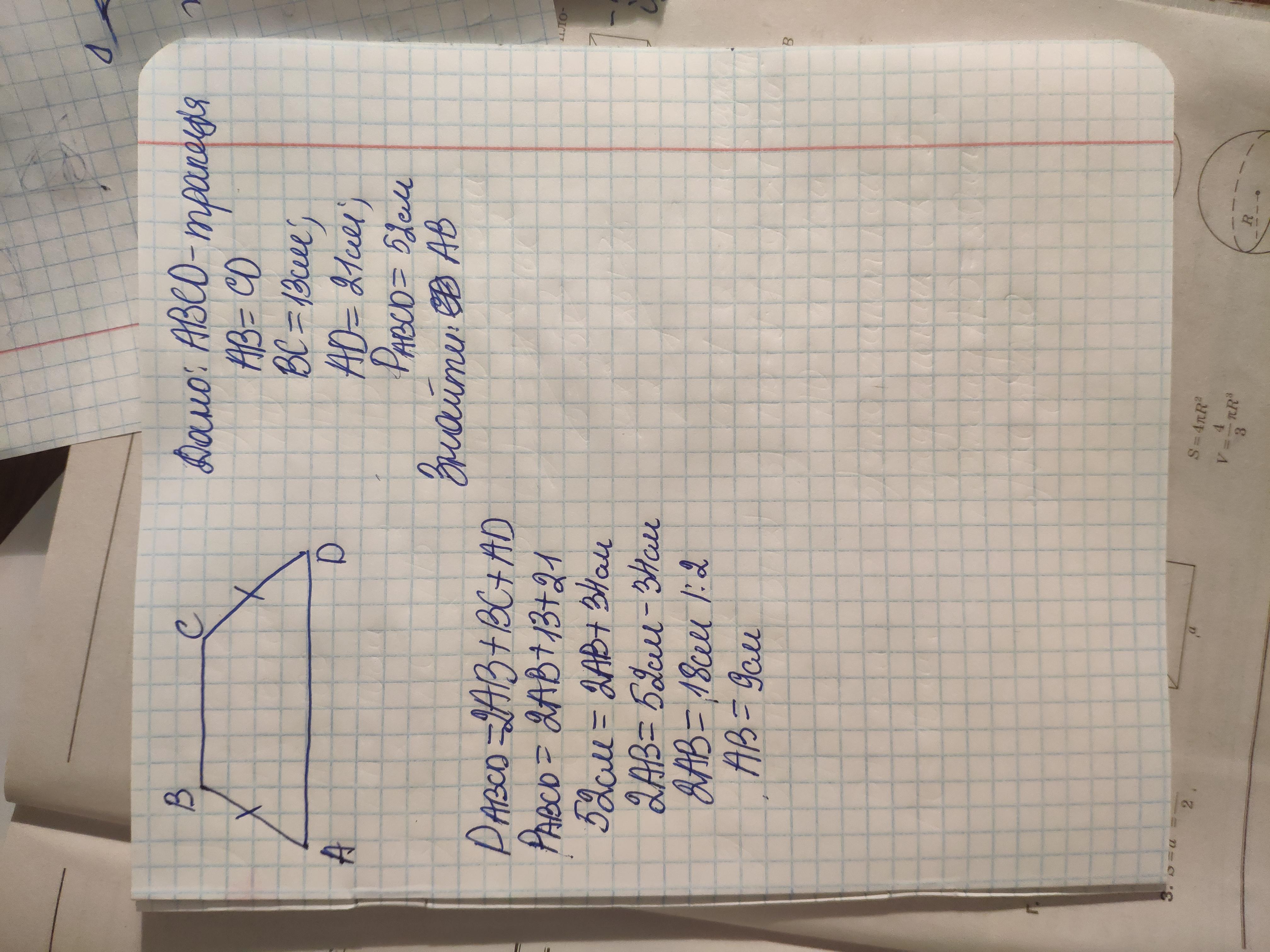 периметр рівнобічної трапеції дорівнює 52см,основи 13