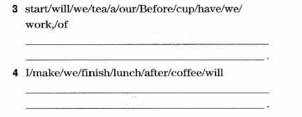 3 start/will/we/tea/a/our/Before/cup/have/we/work, /of