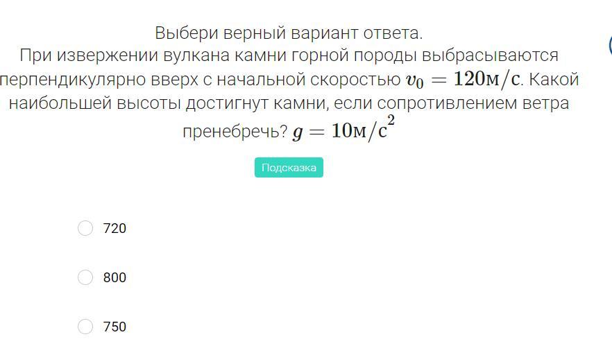 Ответ:h=(v^2)/2g=(120^2)/20=720