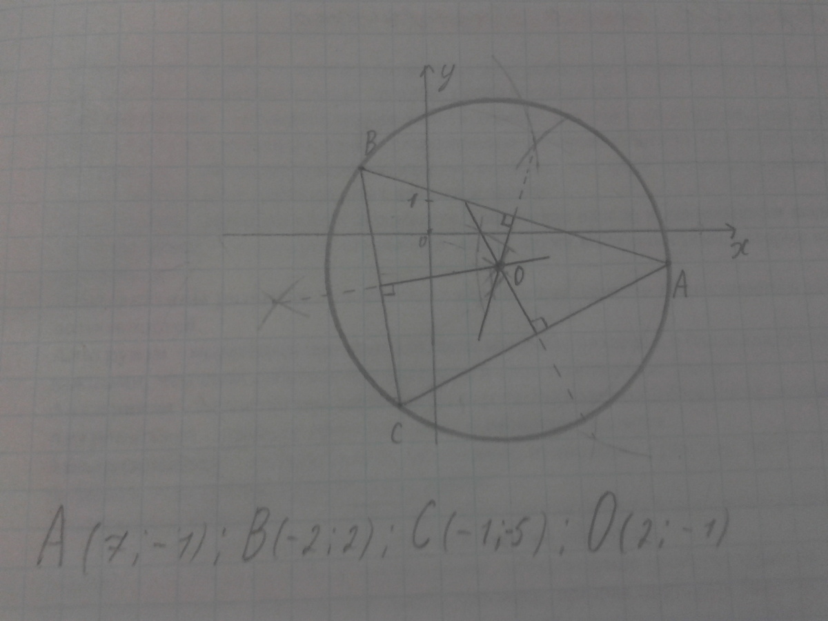3)На каджую сторону опусти среддинный перпендикуляр и точка пересечения этих перпендикуляров будет равноудалённой от этих точек.