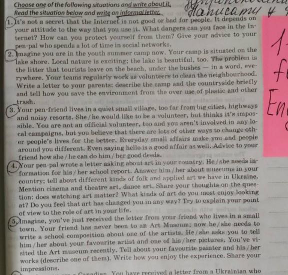 50 баллов!Вибрати одну із тем і написати у формі листа