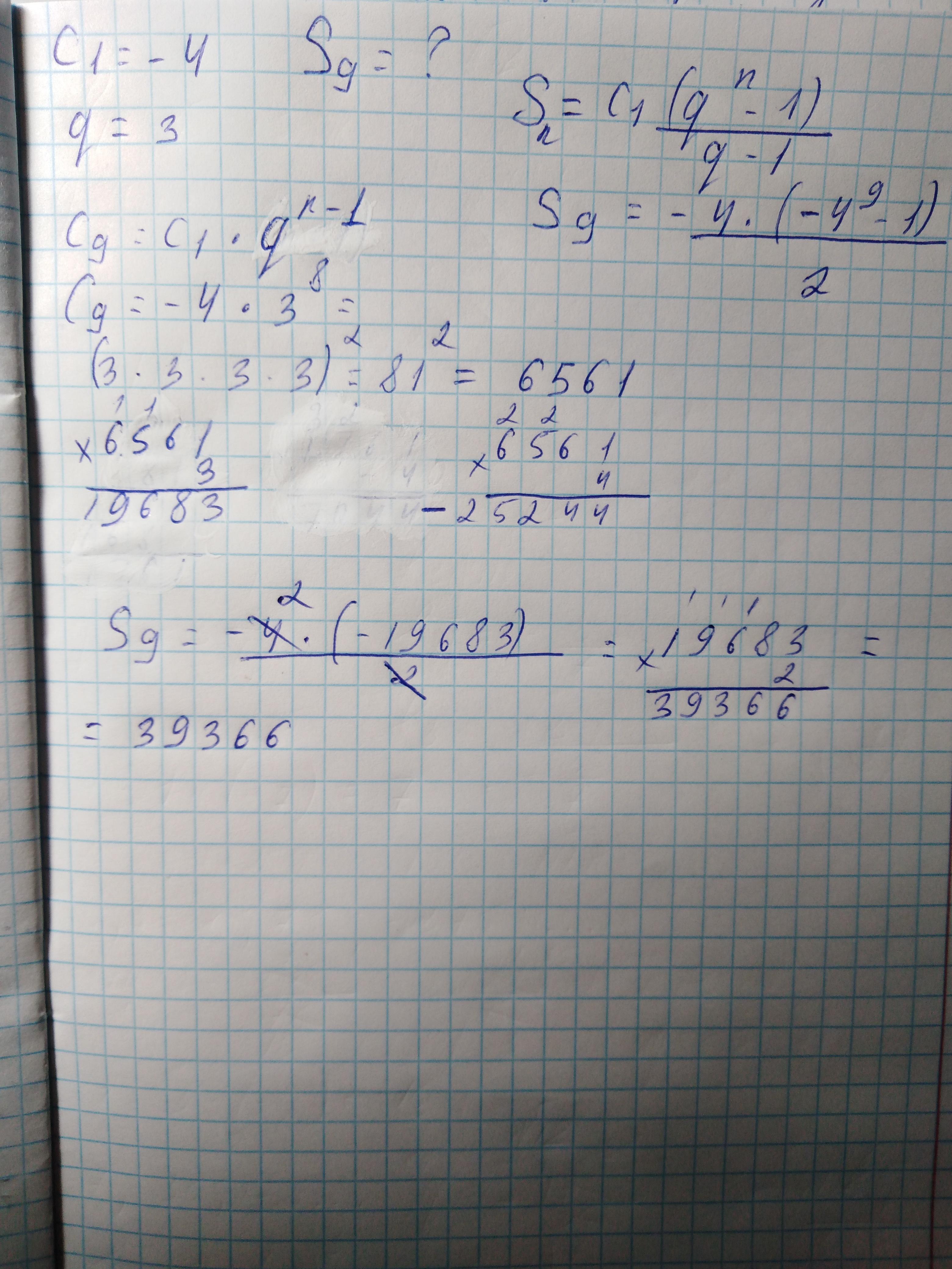Находим сначала девятый член геометрической прогрессии, затем с помощью формулы суммы вычисляем.