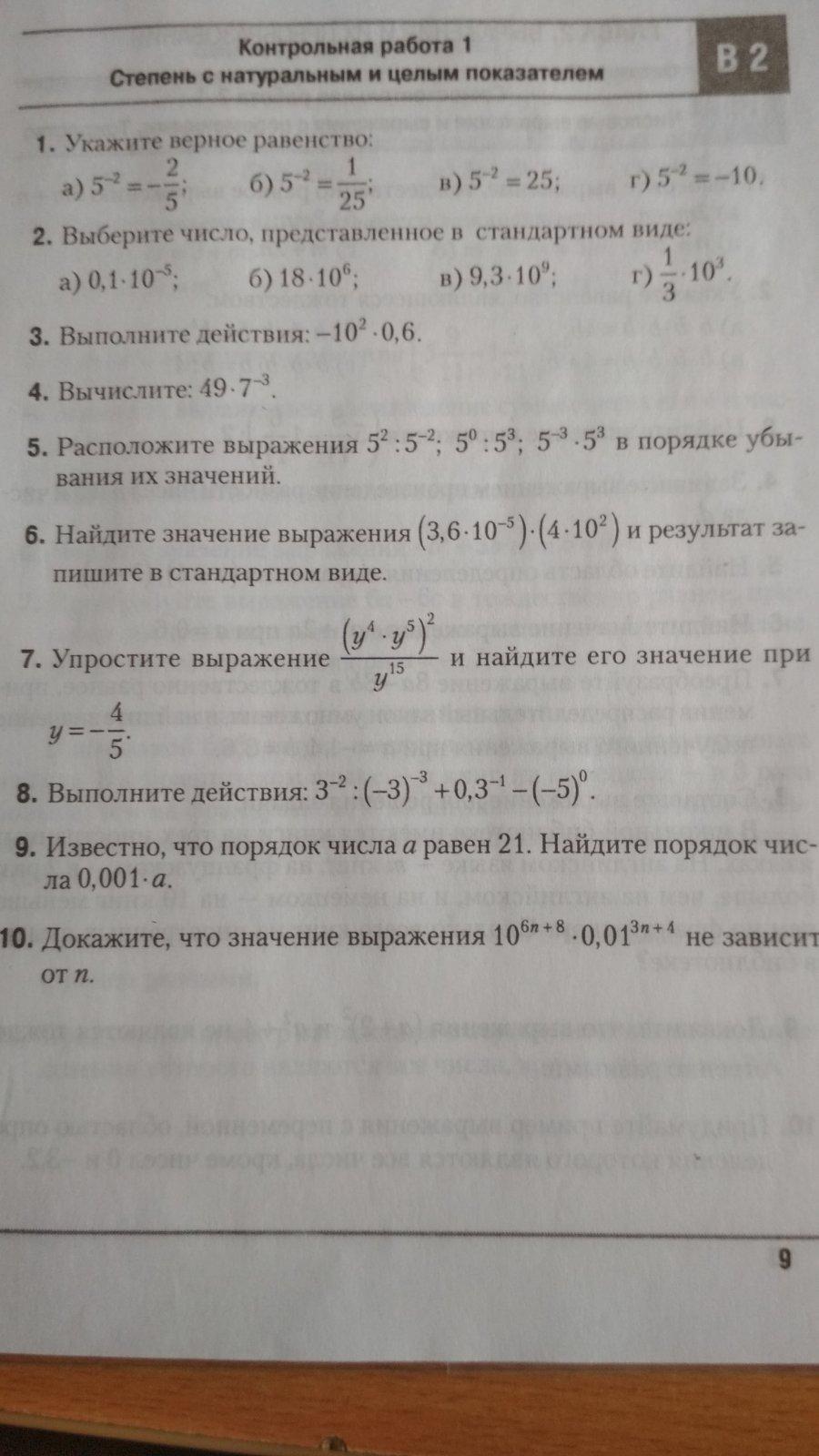 8. 3^-2÷(-3)^-3+0,3^-1-(-5^0)=3^-2÷(-3^-3)+(3/10)^-1-(-1)=-3+(10/3)+1=-2+(10/3)=4/3.