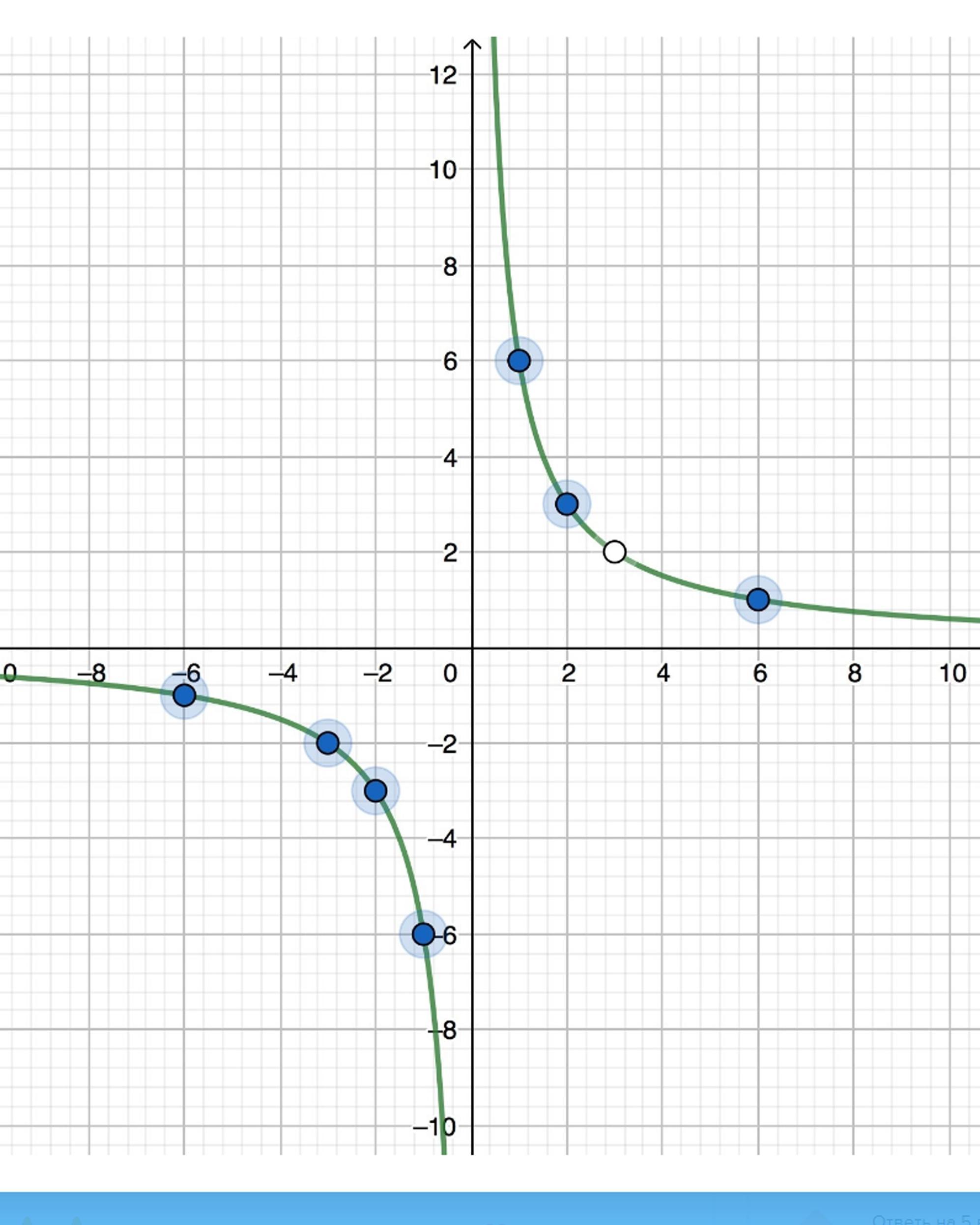 График функции y = 6/x – гипербола, её легко построить. Выпишем значения этой функции в некоторых точках и соединим эти точки кривой.
