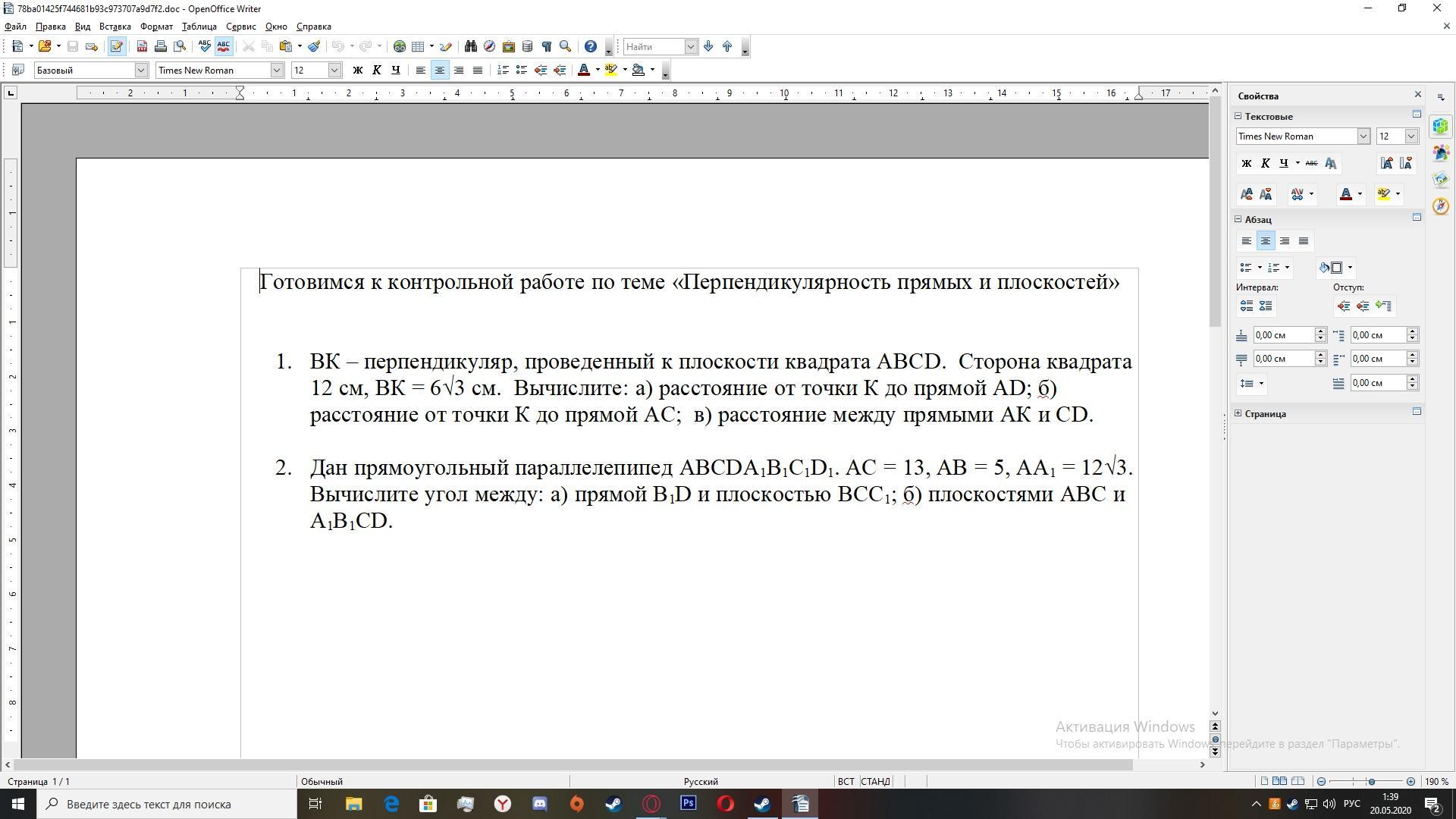 по т. Пифагора B1C = √BC^2 + AA1^2 =√144+432=24