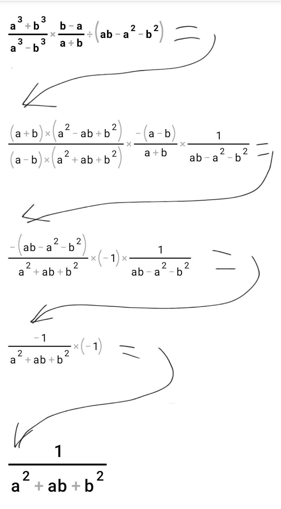 -(a²-ab+b²)/(a²+ab+b²)(-a²+ab-b²)=1/(a²+ab+b²)