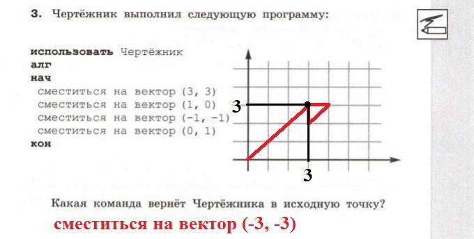 сместиться на вектор (0, 1) - Чертёжник оказывается в точке (3, 2)
