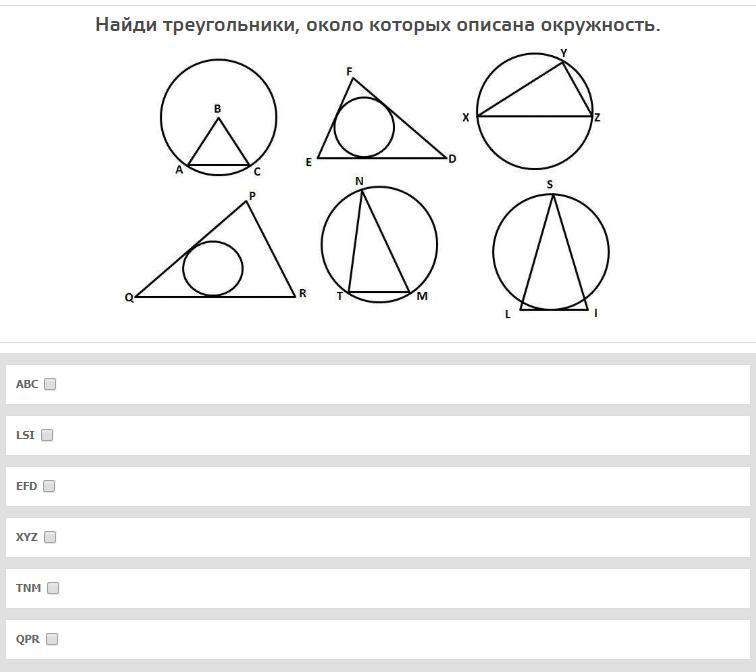 Пояснение: Описанная окружность, это окружность, которая находиться вне треугольника, окружность, которая находится в треугольника называется вписанной.