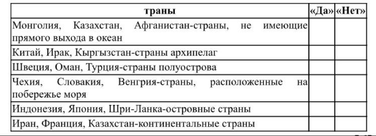 Используя знания по политической карте, определите правильные группы стран в зависимости от географического положения
