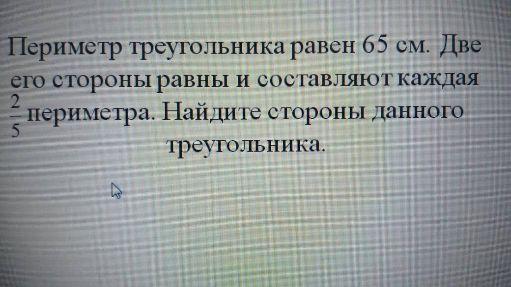 65 × 2/5 = 26 см - 1-ая и 2-ая стороны.