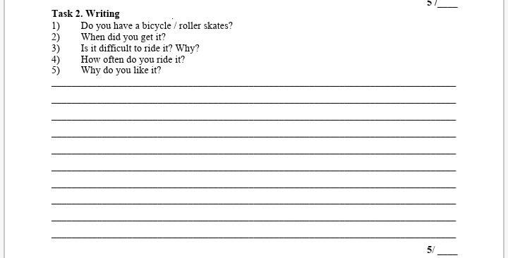 1) Yea, i have roller skates. 2) It was my birthday gift. 3) At the first time, it's very difficult to drive them. But then you teached how to ride them, it's not too hard. 4) Sometimes i ride them. 5) I like them, because it's good transport to ride. Надеюсь помог.
