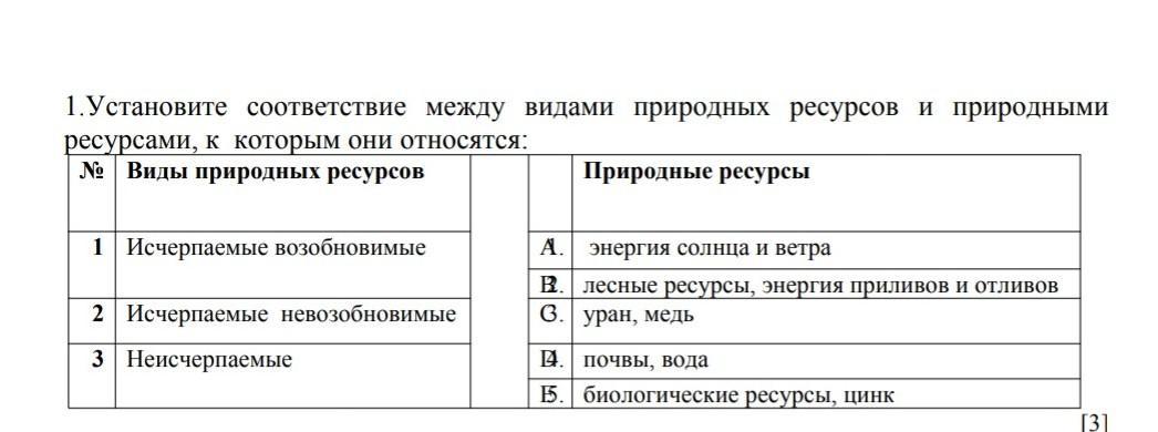 Ответ: Исчерпаемые возобновимые: почва вода, лесные ресурсы, энергия приливов и отливов.