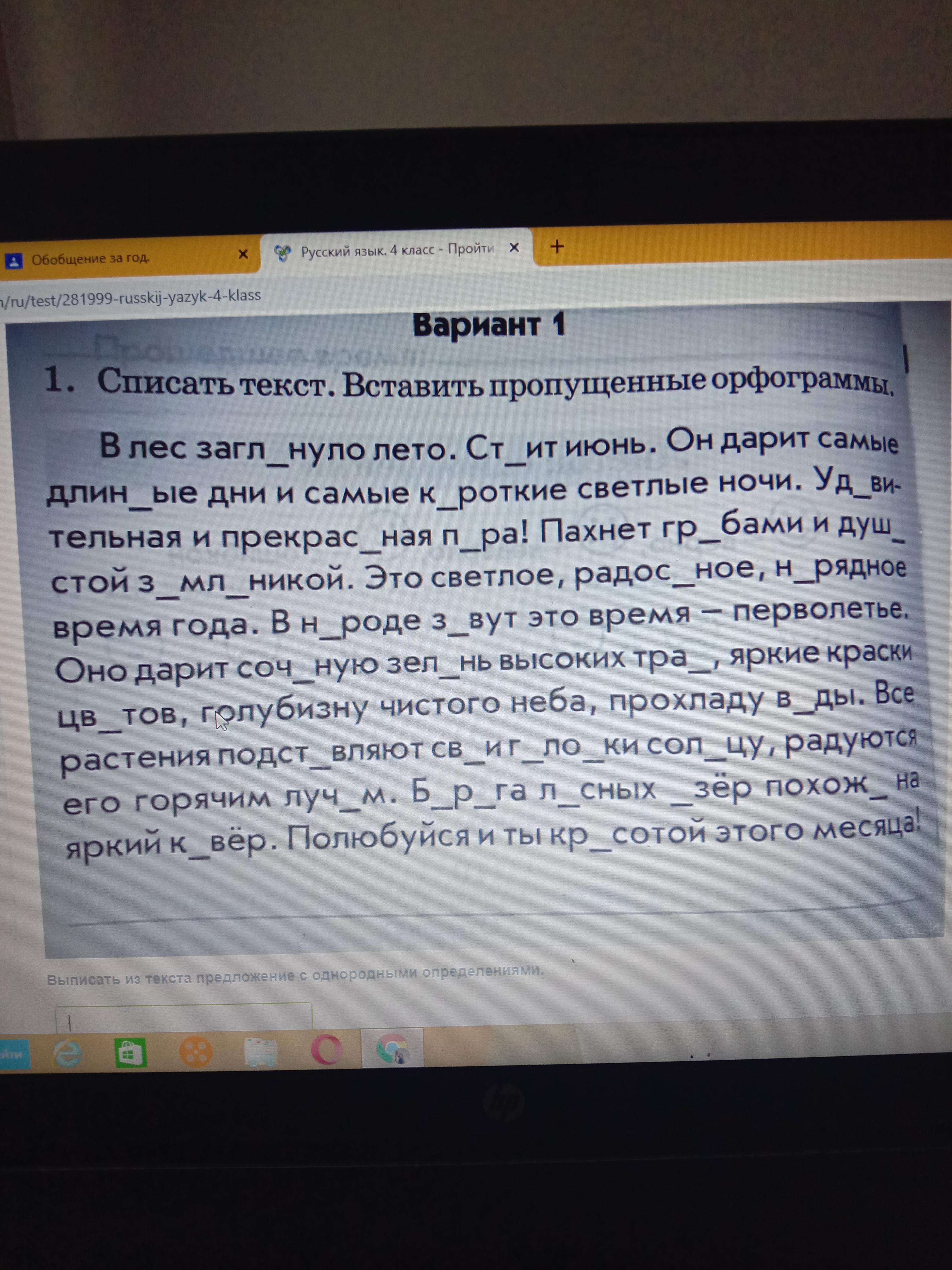 Ответ:в лес загленуло лето. Стоит июнь. Он дарит самые длинные дни и дарит самые короткие светлые ночи . Удивительная и прекрасная пара! Пахнет грибами и душистой земляникой. Это светлое,радостное,нарядное время года. В народе зовут это время-перволетье . Оно дарит сочную зелень высоких трав,яркие краски цветов ,голубизну чистого неба,прохладу воды. Все растения подставляют свои головки к солнцу,радуются его горячим лучам. Берогалосных озёр похожи на яркий ковёр. Полюбуйся и ты красотой этого месяца