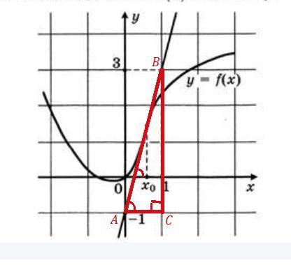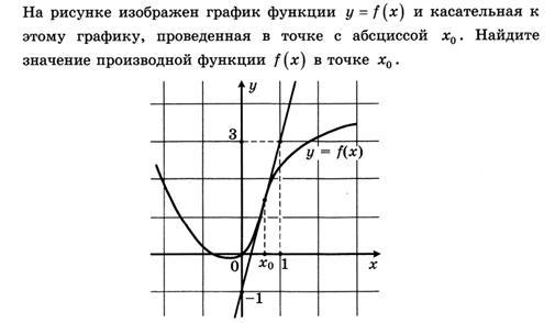 Значение производной в точке касания = тангенсу угла наклона касательной к положительному направлению оси ОХ.