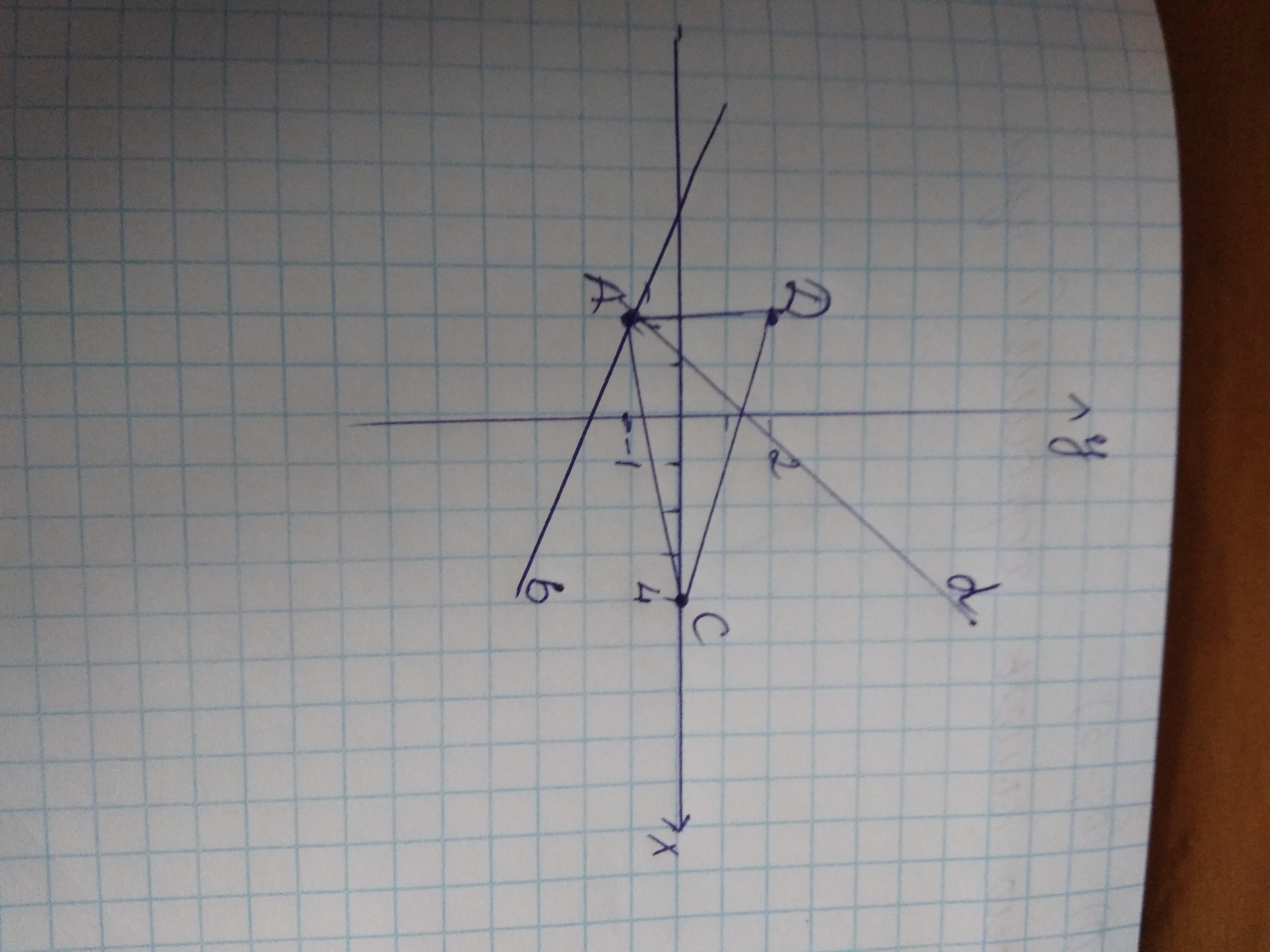 Отметьте на координатной плоскости точки C(4;0),D (-2;2) и A(-2;-1). Проведите прямую CD. Через точку A проведите прямую b, параллельную прямой CD, и прямую d, перпендикулярную прямой СD