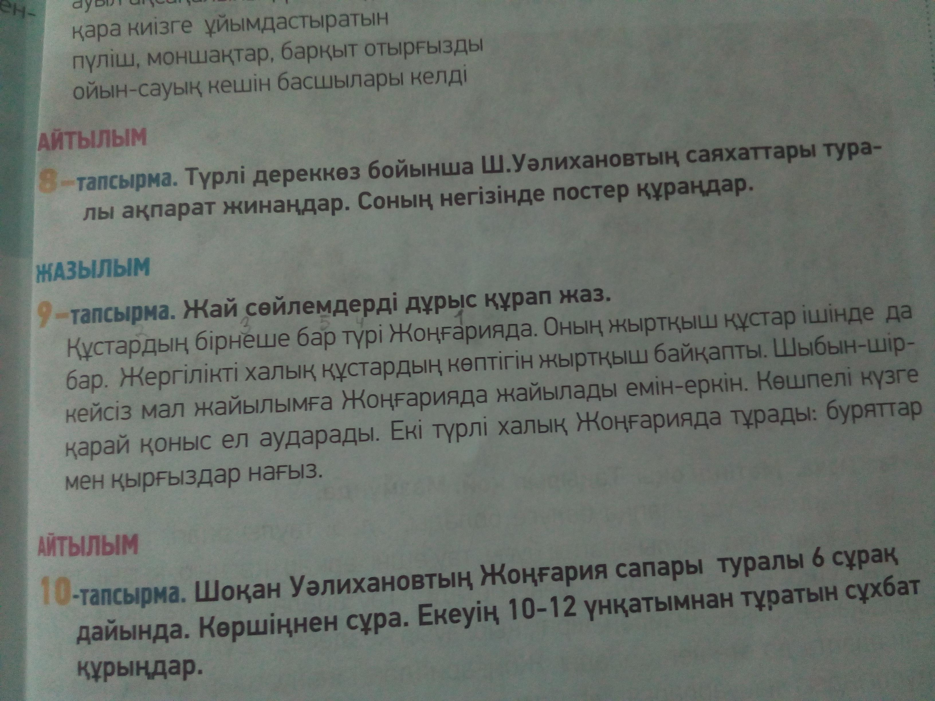 Жоңғарияда құстардың бірнеше түрі бар. Оның ішінде жыртқыш құстар да бар. Жергілікті халық жыртқыш құстардың көптігін байқапты. Жоңғарияда мал жайылымға шыбын-шіркейсіз емін-еркін жайылады. Көшпелі ел күзге қарай қоныс аударады. Жоңғарияда екі түрлі халық тұрады: буряттар мен нағыз қырғыздар.