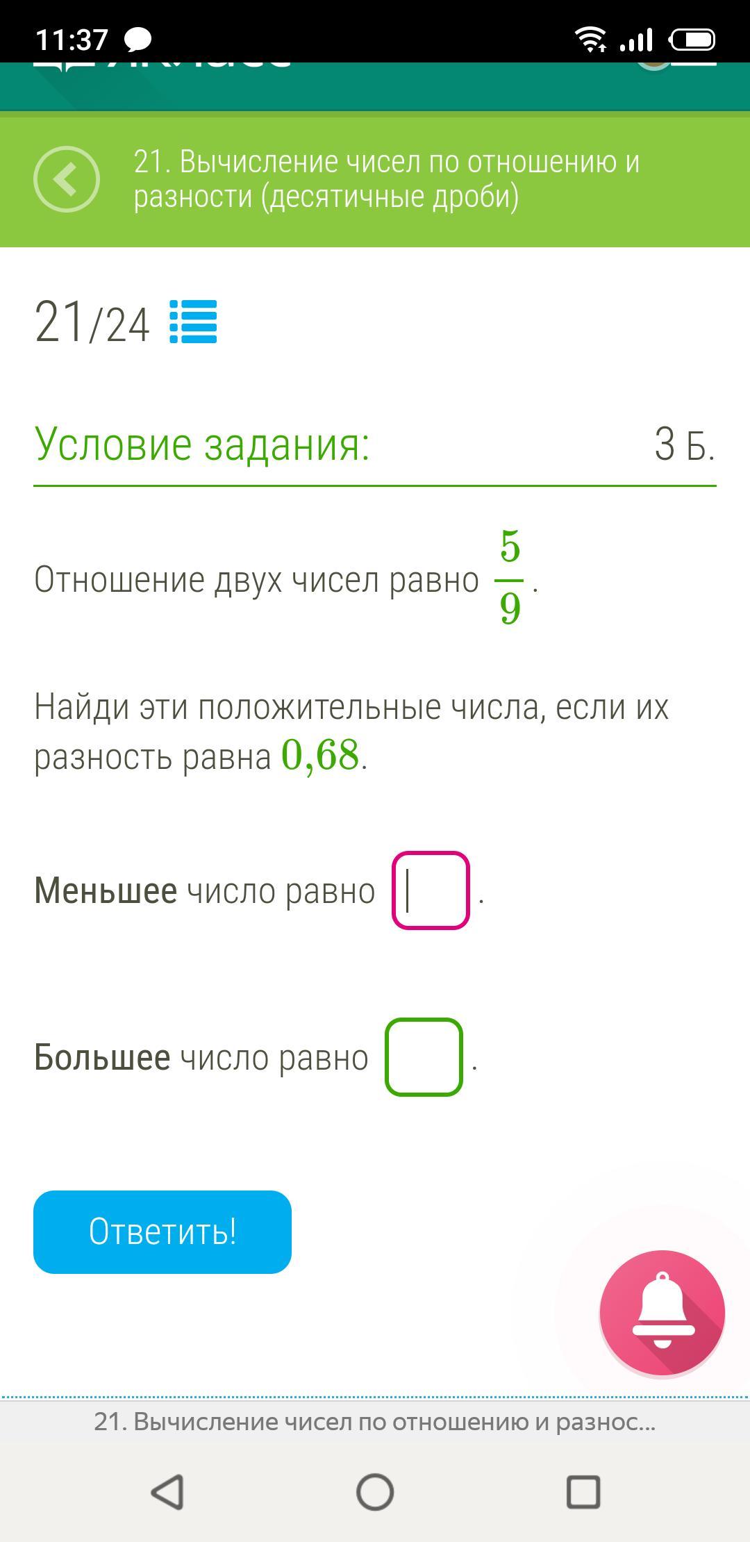Найди эти положительные числа, если их разность равна 0,68.