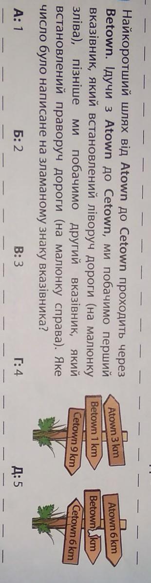 Найкоротший шлях від Atown до Сetown проходить через Betown. Iдучи з Atown до Сetown, ми побачимо перший вказівник, який встановлений ліворуч дороги (на малюнку зліва), пізніше ми побачимо другий вказівник, який встановлений праворуч дороги (на малюнку справа). Яке число було написане на зламаному знаку вказівника?