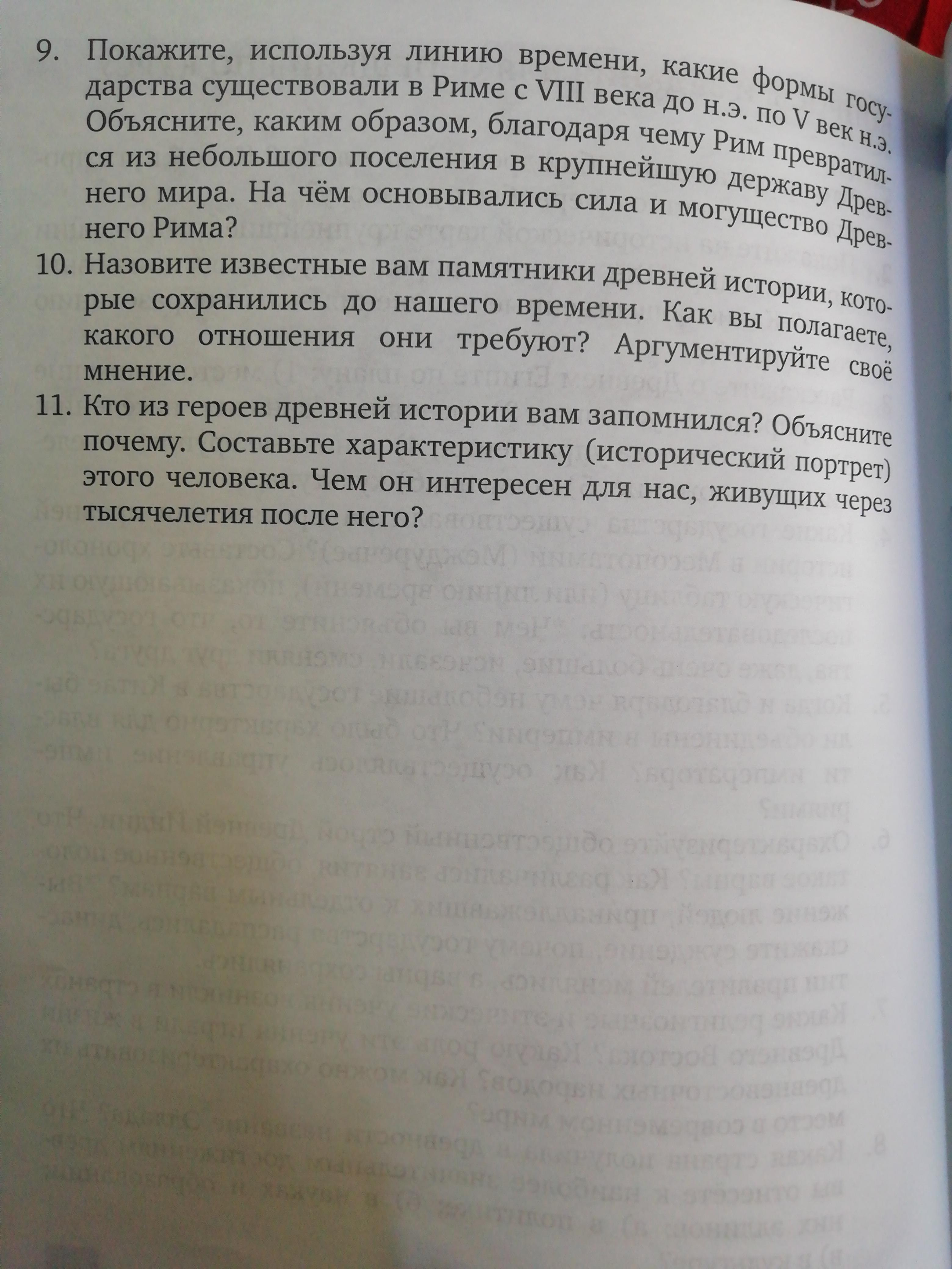 Объяснение:10.Памятники древности,которые сохранились сейчас это-пирамиды Египта,Афинский Акрополь,Колизей в Италии,Каменный город Петра в Палестине,Великая Китайская стена в Китае и др.