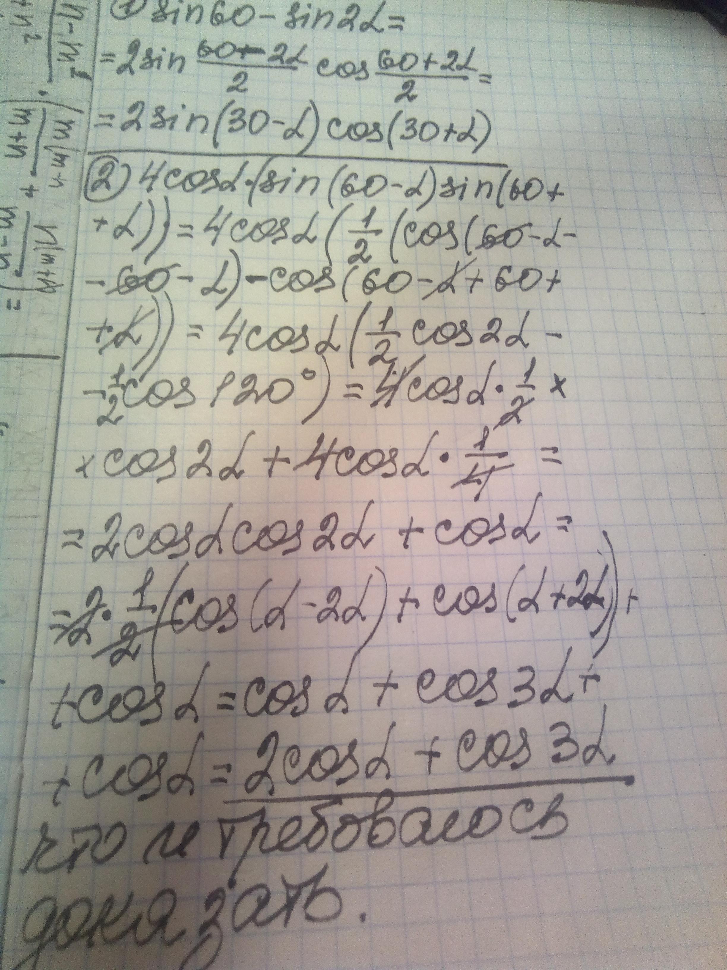 1. Преобразуйте в произведение: sin60 - sin 2α