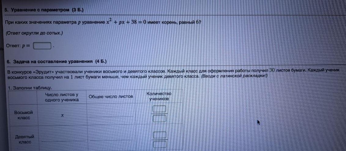 6) Число листов у одного ученика в 9 классе =х+1