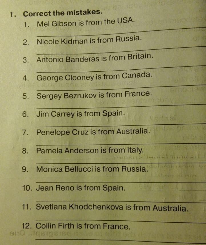 2. Nicole Kidman is from Russia. - No, she isn't. She's from Australia.
