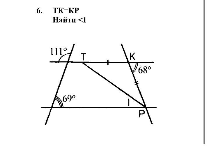 P.S. Так как мы определили, что ∠КТР=∠1, а они явл. внутренними накрест лежащими углами, то отсюда следует, что КТ║Р?