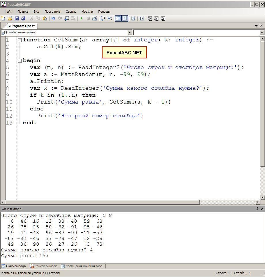 var k := ReadInteger('Сумма какого столбца нужна?');
