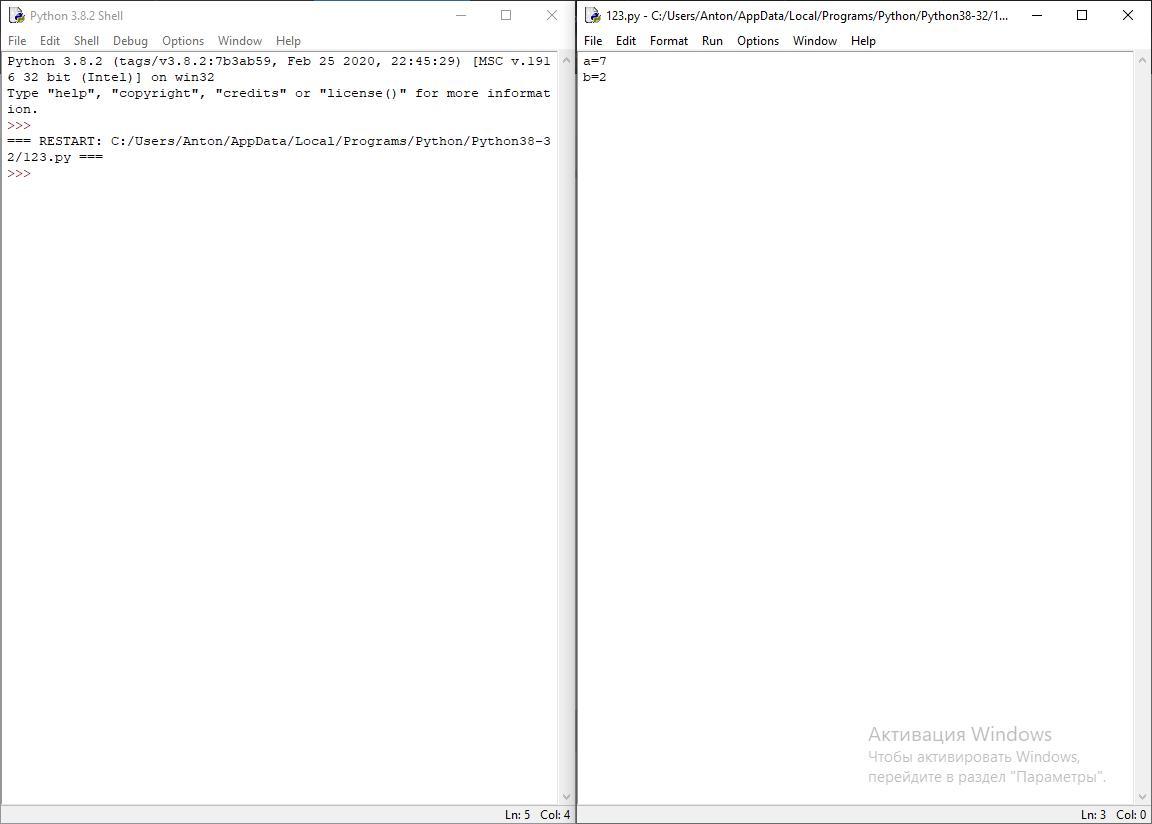 Это полный код? Так то, если Python, то должен вывести 7 потом 2. И то, если напишешь в IDLE