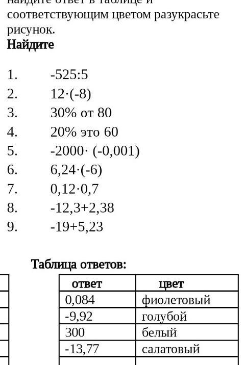 9. -19 + 5,23= - 13,77 - салатовый