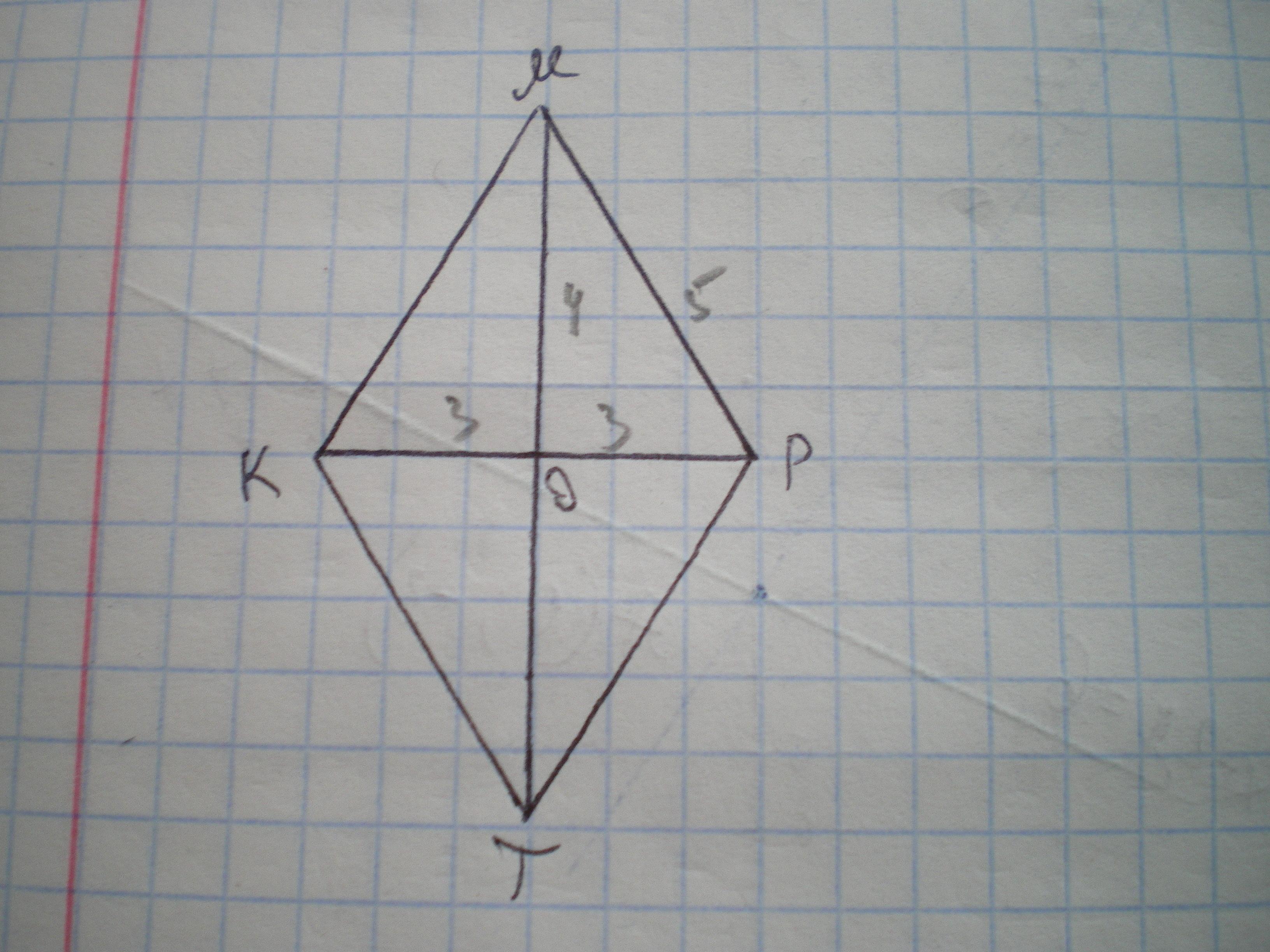 Діагоналі ромба перетинаються під прямим кутом і в точці перетину діляться навпіл. Ромб КМРТ складається з 4 рівних трикутників. Площа кожного S=24:4=6 см².