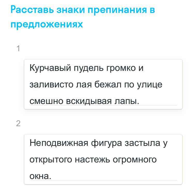1. Курчавый пудель, громко и заливисто лая, бежал по улице, смешно вскидывая лапы.