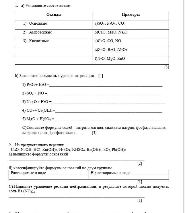 2. Из предложенного перечня: СаO, NaOH, HCl, Zn(OH)2, H2SO4, KHSO4, Ba(OH)2, SO3, Pb(OH)2
