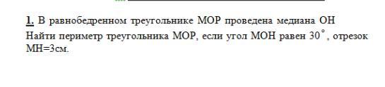 угол МОР = 30°×2=60, так как в равнобедренном треугольнике медиана=бисектриса=высота