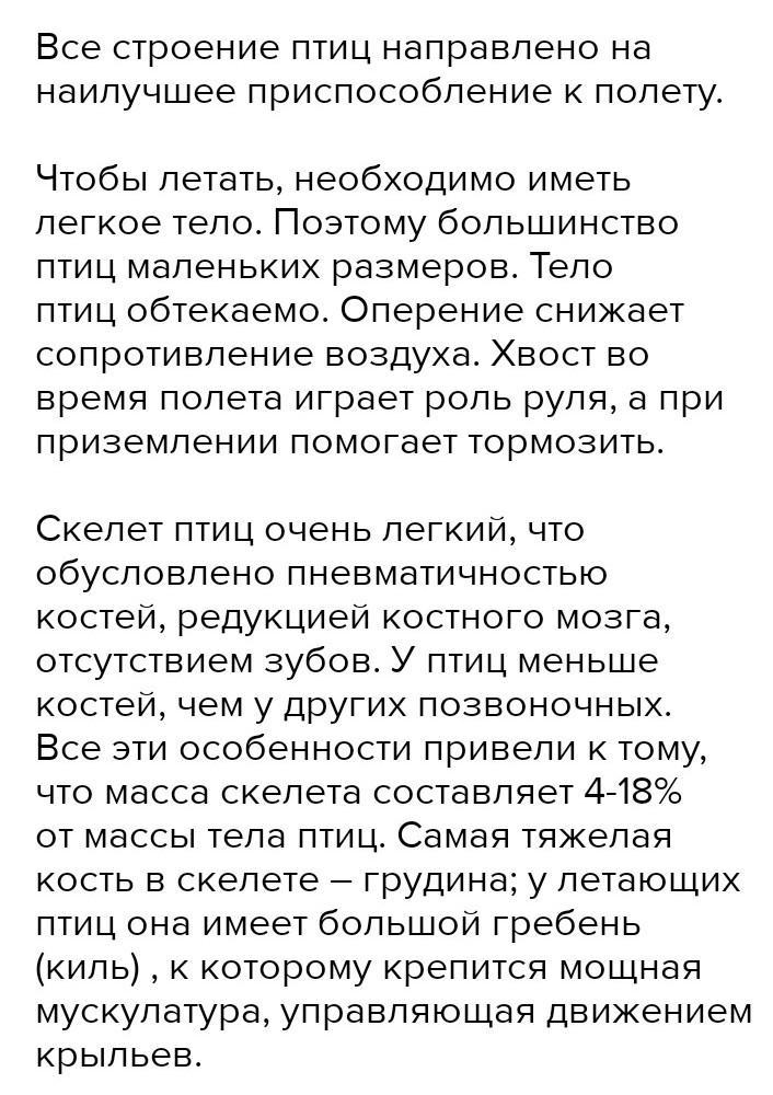 Перечислить (не менее 13) приспособлений процессов жизнедеятельности птиц, связанные с полетом.