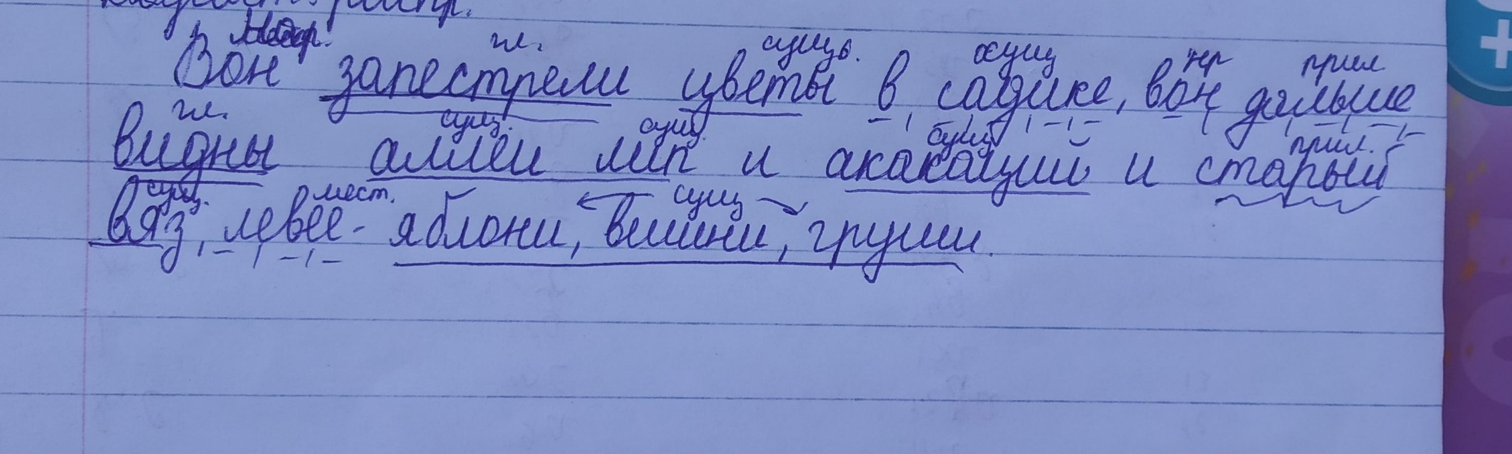 Вон запестрели цветы в садике, вон дальше видны аллеи лип и акакаций и старый вяз, левее-яблони, вишни, груши.