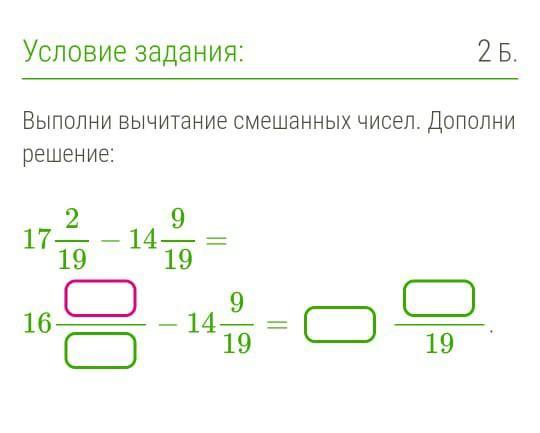 16 21/19 - 14 9/19 = 2 12/19