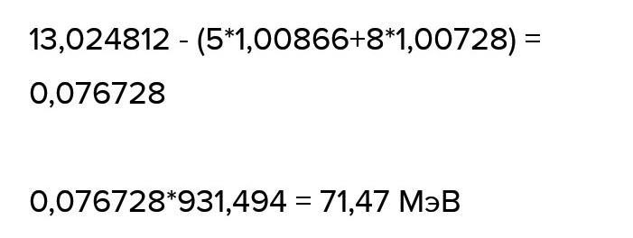 Вот 13,024712 - (5*1,00866+8*1,00728)=0,076728