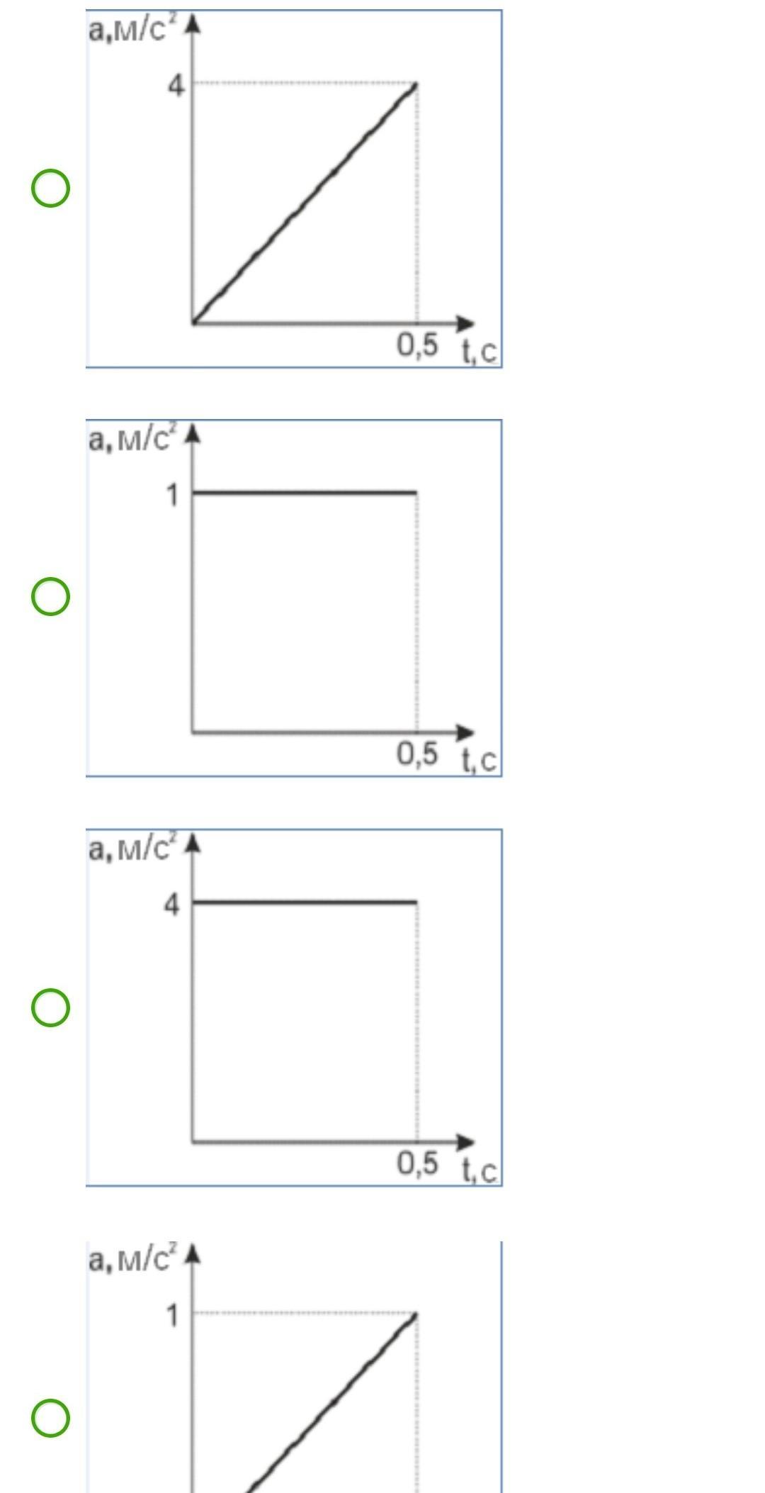 Выясни, на каком из графиков представлена зависимость модуля ускорения от времени движения шарика.