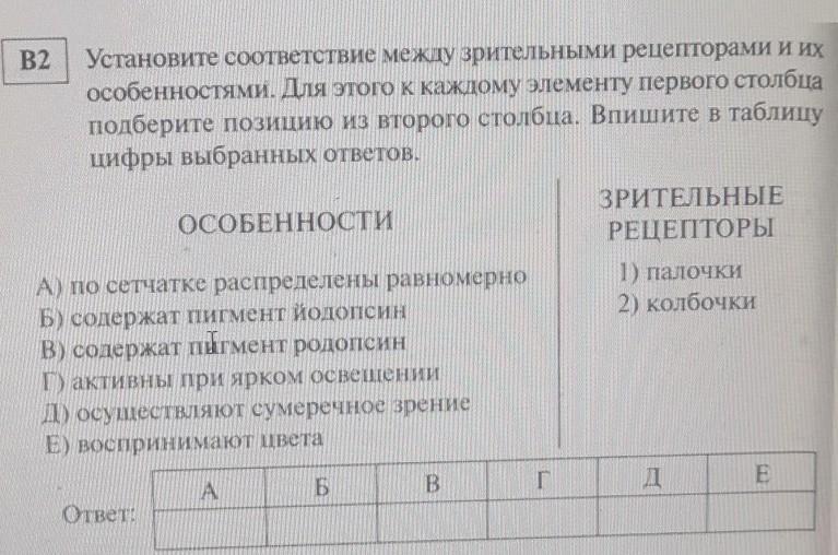 Б - Йодопсин содержится в колбочках сетчатки глаза и обеспечивает цветовое зрение, в отличие от другого зрительного пигмента — родопсина, ответственного за сумеречное зрение.