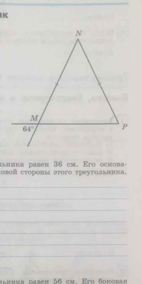 угол NPM=64 ГРАДУСА (по теореме) так как В равнобедренном треугольнике углы при основании равны