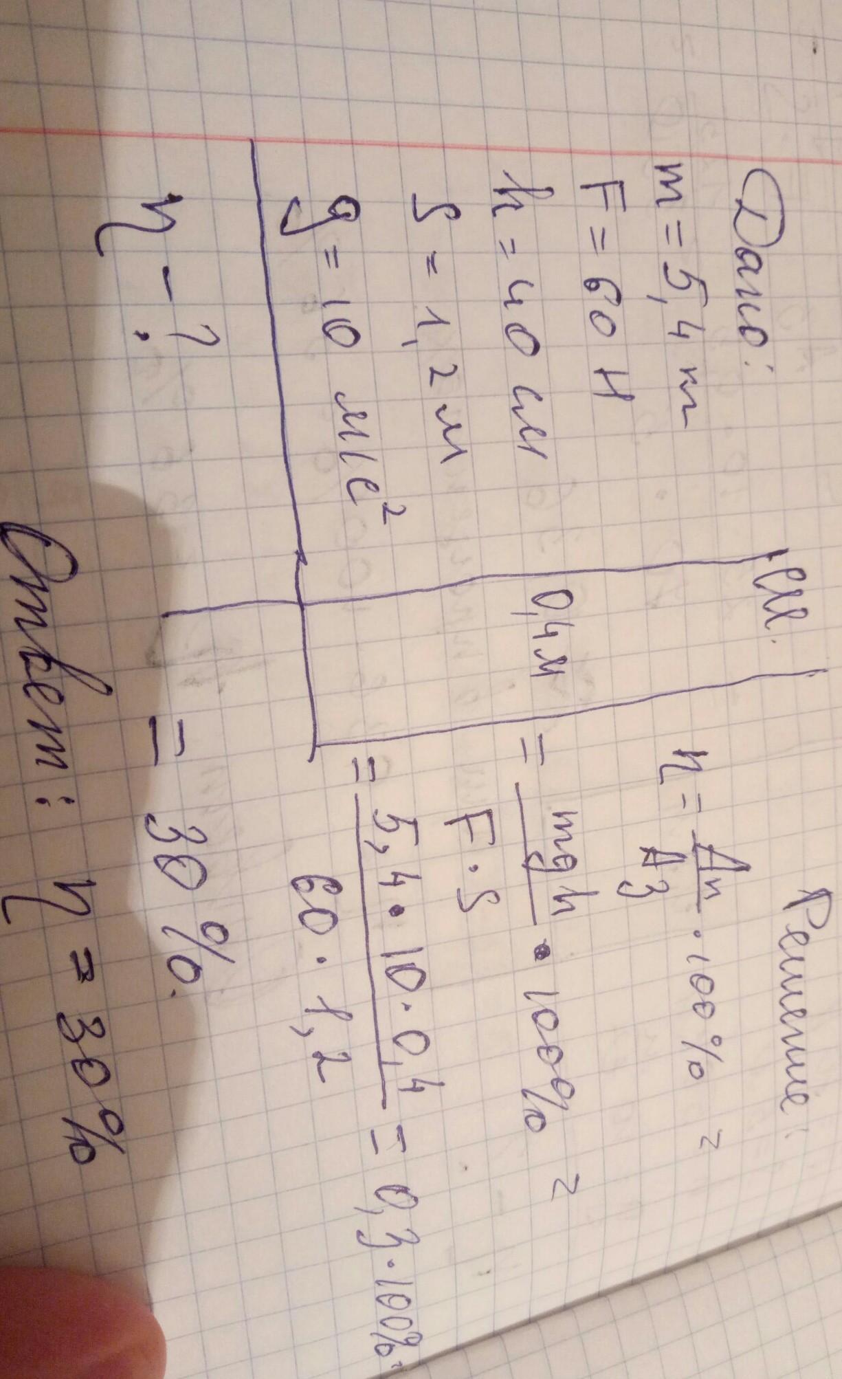 Похилою площиною піднімають тіло масою 5,4 кг прикладаючи силу 60 Н. Довжина похилої площини 1,2 м, висота 40 см. Чому дорівнює корисна робота? Помогите срочно надо.