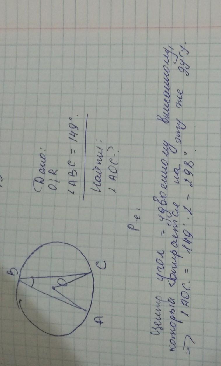 Чему равен центральный угол, если соответствующий ему вписанный угол равен 149°?