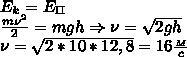 V = √(2gh) = √(2*10*12,8) = √256 = 16 м/с.