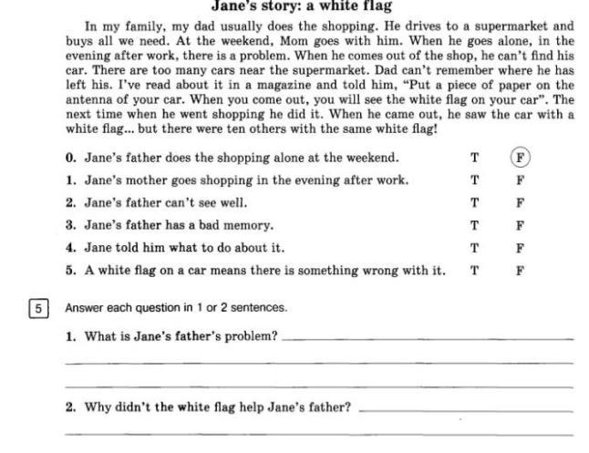 Задание № 2: Прочитать рассказ и отметить утверждение как правильное (Т) или неправильное (F).