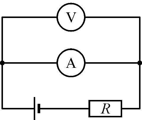 В цепи, схема которой изображена на рисунке, вольтметр показывает напряжение U = 0,2 В, а амперметр – силу тока I = 200 мА. Известно, что сопротивление вольтметра в 5000 раз больше сопротивления амперметра.