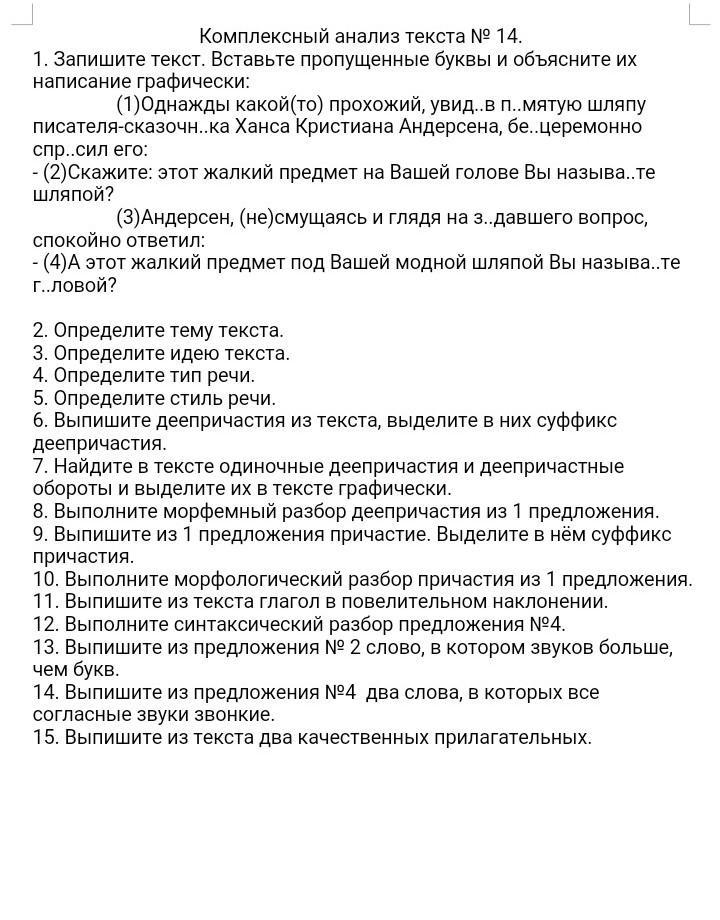 1)Однажды какой-то прохожий, увидев помятую (одиночное причастие) шляпу писателя-сказочника Ханса-Кристиана Андерсена, бесцеремонно спросил его: