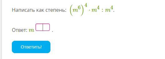 2) (m^6)^4 * m^4 : m^4 = m^(6 * 4 + 4 – 4) = m^24