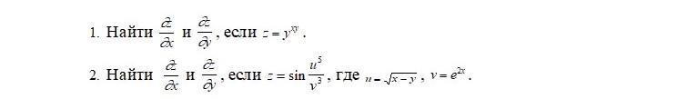 Так как переменная х участвует только в показателе функции z(x, y), то частную производную по х находим как от показательной функции с основанием y, в показателе которой сложная функция: