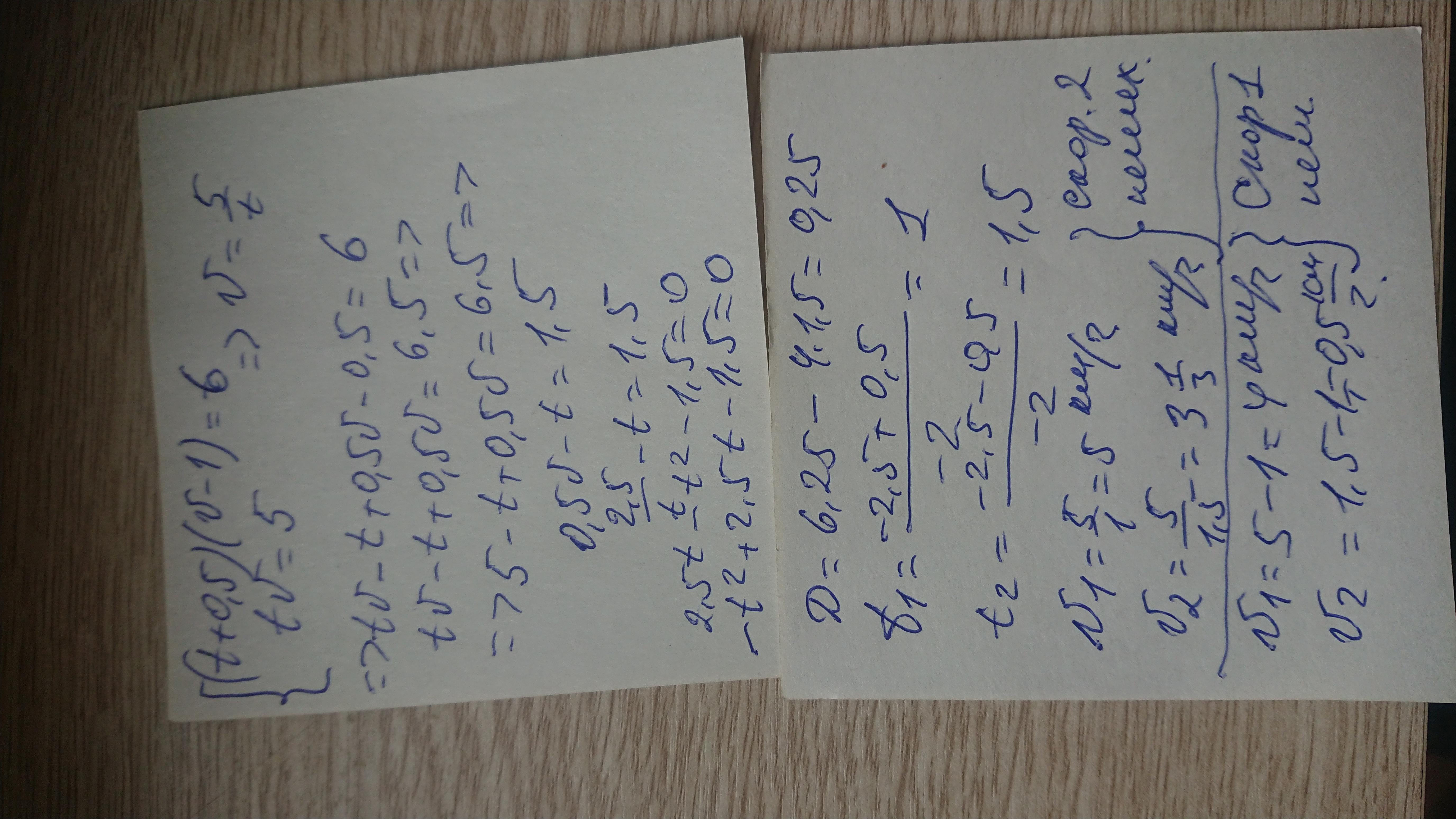 Первый пешеход прошел 6 км, а второй пешеход 5 км. Скорость первого пешехода на 1 км/ч меньше, чем скорость второго. Найдите скорость первого пешехода, если известно, что он был в пути на 0,5 ч больше второго.